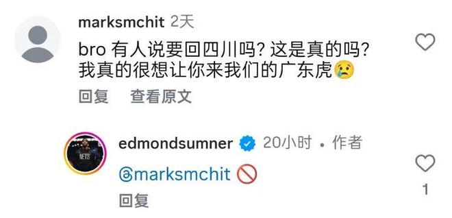 虽然近期关于萨姆纳加盟广东的消息陷入停滞,甚至一度有消息称萨姆纳可能会回归四川,但萨姆纳在社媒辟谣回归四川一事,也让广东球迷松了一口气。
