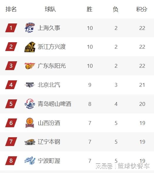 附:CBA积分榜最新排名