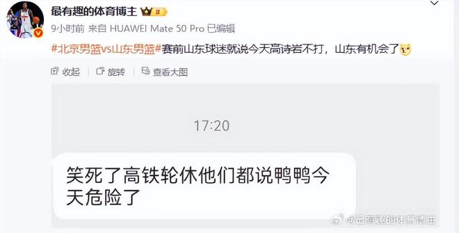 对于山东球迷来说,塞巴斯蒂安值得感谢,珀赛尔值得感谢,砍下15分并出色完成组织串联大任的谢智杰也值得感谢。但别忘了,山东球迷还应该感谢一人。没错,他就是本场轮休的高诗岩。如果不是因为他的膝盖积水,缺席了本场比赛,若是他还在场上浪投,疯狂打铁,昨晚山东队就不可能组织梳理得这么好,进攻也没有这么高效。球迷在赛前就预言:“今天高诗岩不打,山东有机会了”、“信不信,没有高铁可能山东会打得更好”、“山东队真的没高铁打得非常好”。