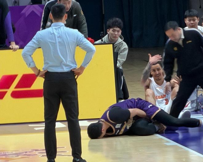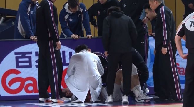 天津客场98-93击败广州龙狮,在比赛第四节还剩5分钟阶段的一次篮下拼抢中,赖俊豪在底线附近和李祥波发生身体对抗,悲催的赖俊豪,在救球过程中身体飞出界外,脑袋直接撞到了场边的广告牌上,一度出现了晕厥的情况。