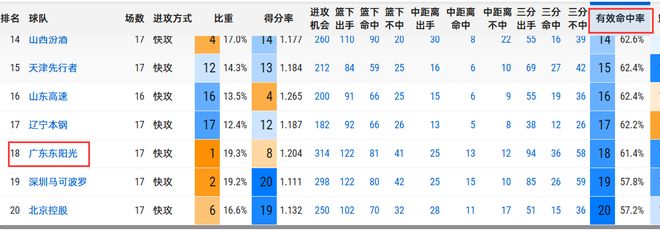广东队是联赛最擅长跑轰的球队,但尴尬的是,广东队也是有效命中率榜单中倒数第3的球队,有效命中率仅61.4%,说明球队全队都是神经刀,非常依赖临场手感,也非常挑对手,遇到北京、上海这样的强队,内线有周琦、怀特塞德,锋线有曾凡博、雷蒙、张镇麟、弗格,广东队就完全攻不进,但遇到像吉林、辽宁、四川这样要优质内线没优质内线,要优质锋线没优质锋线的对手,广东队反而能大展拳脚去虐菜,所以奎因会爆发是非常正常的。