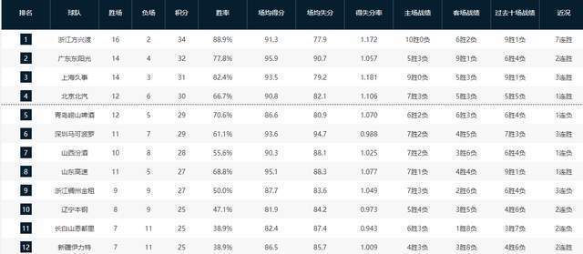 CBA积分榜最新排名!北京掀翻浙江杀回前四,昔日总冠军依旧垫底