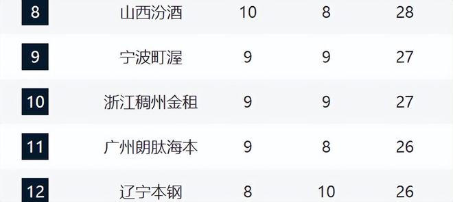 山西则排在第十,不过张宁和焦海龙都受伤了,后续的比赛并不保险。