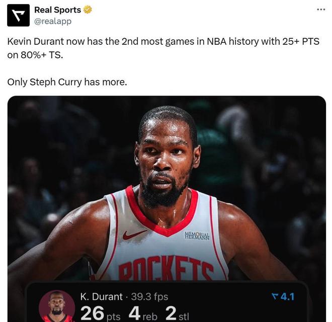 这让杜兰特轻轻松松就拿到生涯第67次25+且真实命中率80+%,追平哈登并列历史第二,同时缩小与第一库里100次的差距。