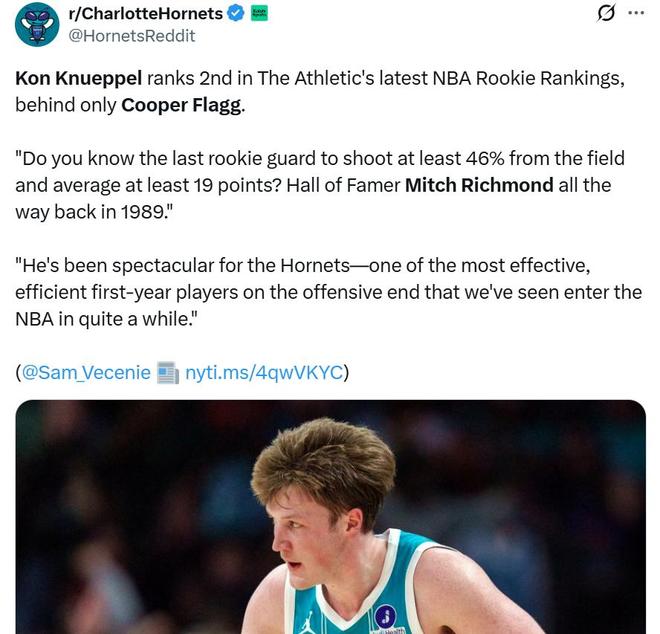 在NBA最新公布的最佳新秀榜单中同样如此,弗拉格继续高居第一,克努佩尔紧随其后位列第二。