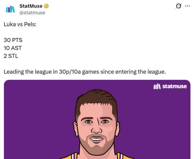 其中东契奇22中11,拿下30分2板10助2断1帽全能数据,自从东契奇进入联盟以来,这已经是其第92次单场拿到至少30分10助,同期联盟第一,特雷杨以91次排在第二。