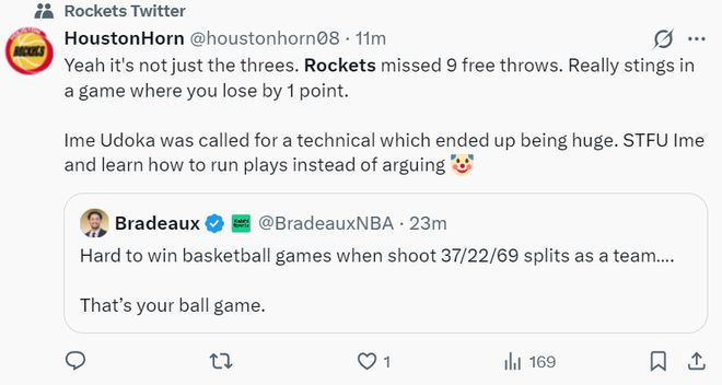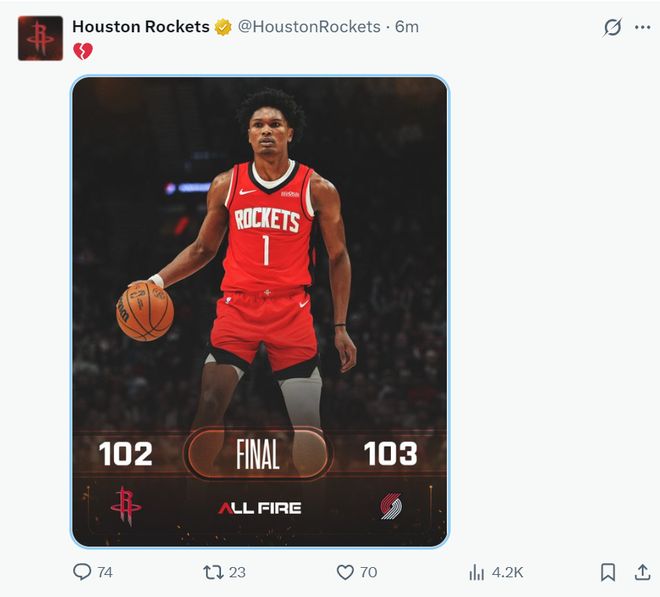火箭球迷:看了比赛的人才知道这场比赛有多么令人难受。那些说少了申京会更好的人根本不懂球,申京绝对是这支球队的MVP球员。