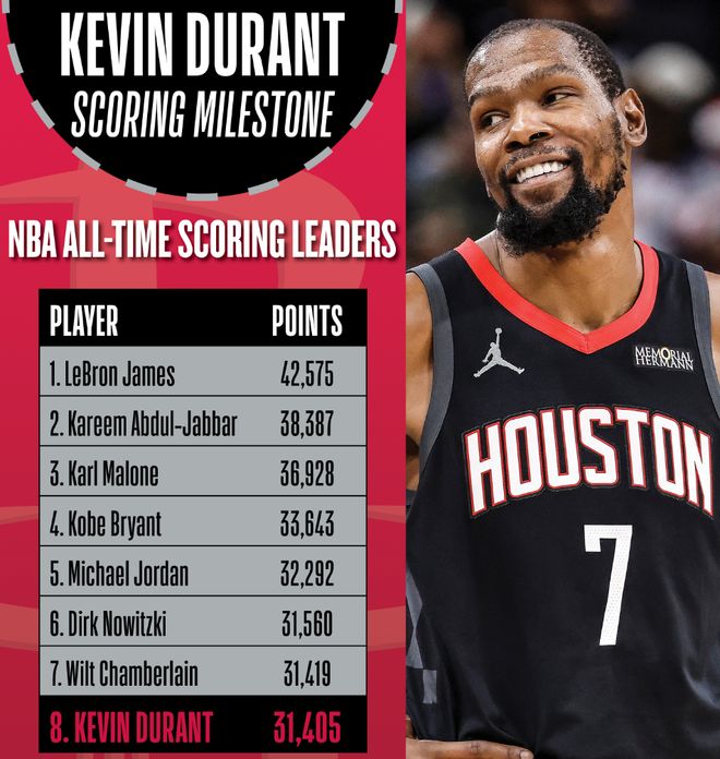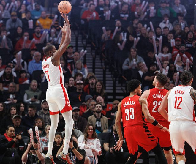 易边再战,杜兰特命中一个三分球后得分正式超越张伯伦升至历史第七位,随后KD再度命中一个三分球,杜兰特传球失误后又防到对手一个失误,谢泼德连续命中三个三分球打停开拓者。杜兰特三分再中,火箭三个前场篮板三分不中太可惜了,谢泼德反击压哨命中,单节谢泼德11分2助攻,杜兰特三节23分10篮板,阿门三节20分8篮板,谢泼德三节18分。