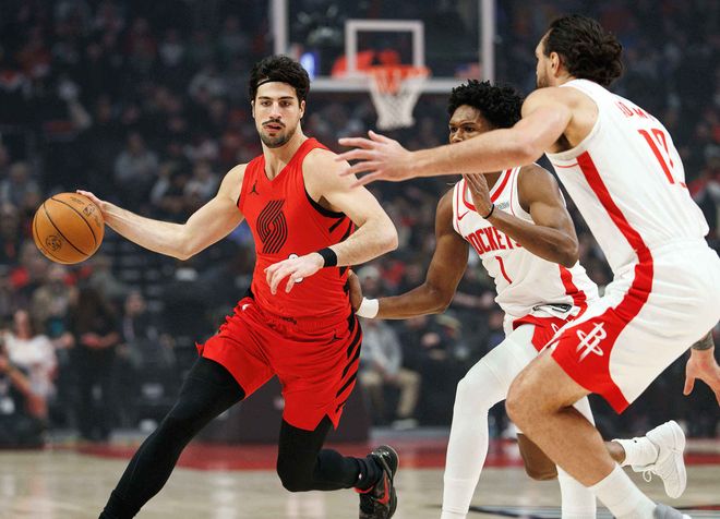 乌度卡继续用死亡五大的先发,这套阵容移动不足的软肋被开拓者连续狠抓,开拓者空切、外线三分都开,好在阿门-汤普森开场4中4连拿8分。谢泼德登场后火箭的防守更为稀烂,卡马拉都命中两个空位三分,芬尼登场为火箭命中一个三分,首节打完火箭29-28反超开拓者。