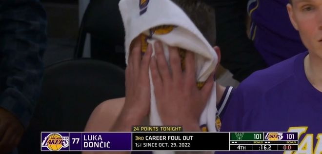 东契奇6犯离场细节:怒摔护膝毛巾捂脸湖人本季首次关键时刻输球