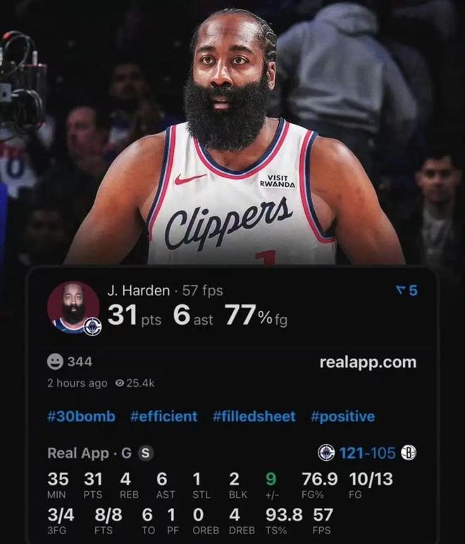 最终,快船也在哈登的带领下击败篮网
