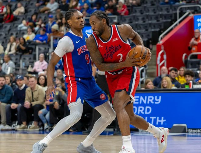 有意思的是,活塞喊出暂停后,轮到卢指导展示容错率和大心脏,他把状态火热的小卡摁在了替补席上,哪怕场上局势瞬息万变、风起云涌,他自岿然不动,硬生生等到最后三分钟才让卡子哥重新披挂上阵。好在卢指导还是赌对了,莱昂纳德因为被控制了出场时间,在30分钟的上场时间里还是非常高效地13中8,交出26分8篮板1助攻4抢断的成绩单,几乎每一分都价值连城。