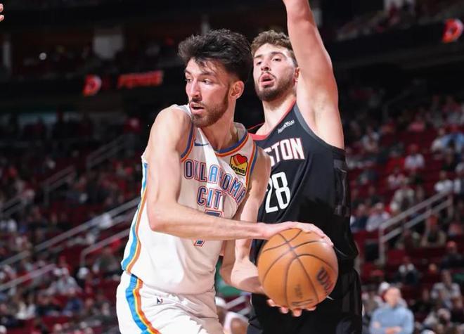 乌度卡显然希望通过篮板控制权掐死雷霆的快速推进节奏,将比赛拖入泥潭式的阵地肉搏,然后利用夹击和包夹限制持球核心,同时依靠二次进攻蚕食分数。雷霆这边同样针对性极强,他们对杜兰特和申京的持球采取围剿式防守,一旦两人拿球就迅速形成包夹,迫使火箭核心球员在高压下做出选择。这种核心对核心的针对性防守,让双方当家球星都打得比较吃力。雷霆第一得分手亚历山大全场仅出手11次命中6球,罚球8中7,贡献20分2篮板4助攻2盖帽。虽然得分不算爆炸,但他成功延续了连续112场至少20分的惊人纪录。