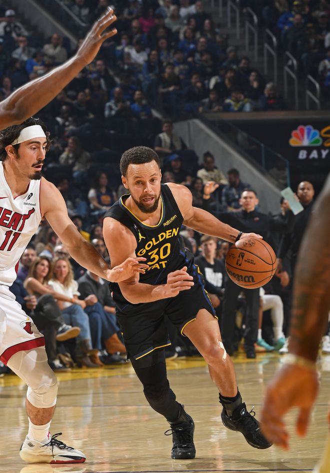 第三节开场不久巴特勒伤退,库里需要扛产量,但库里早早吞了第四次犯规只能被换下,好在勇士在巴特勒伤退后打出了12-0的小高潮,库里三节打完16分10助攻2篮板,勇士领先热火达到11分。