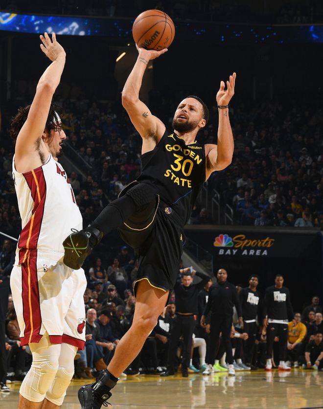 在波杰连续命中两个三分打停热火,库里起身为波杰庆祝了,热火队也放弃比赛换全替补了,库里末节3分钟打卡,全场比赛仅仅出战27分48秒,13中6,三分10中5,拿到19分11助攻3篮板3失误,命中率46.7%,三分命中率50%,正负值+3。