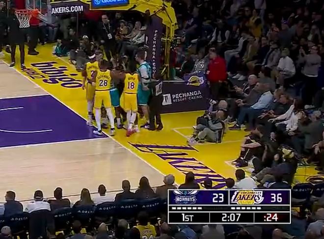 次节开场黄蜂很快缩小到4分,詹姆斯一波连续的单打狂打铁,好在老詹一次反击制造犯规,斯玛特也来连串打铁黄蜂已经扳平分差。西恩-詹姆斯三分命中黄蜂反超,米勒三分命中打停湖人,拉拉维亚终结了5分半的运动战进球荒,可黄蜂已经领先到7分,勒布朗三分命中,克努佩尔回应一个三分,半场打完黄蜂64-55反超湖人。