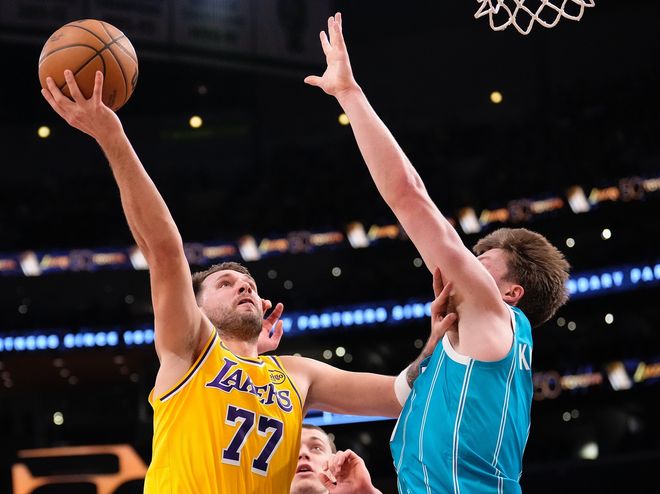 湖人:东契奇39分4助攻3篮板6三分,詹姆斯29分9篮板6助攻2抢断1盖帽,艾顿12分6篮板,拉拉维亚18分3篮板,斯玛特10分4篮板,文森特7中0拿0分。