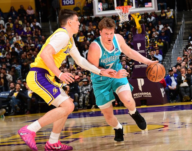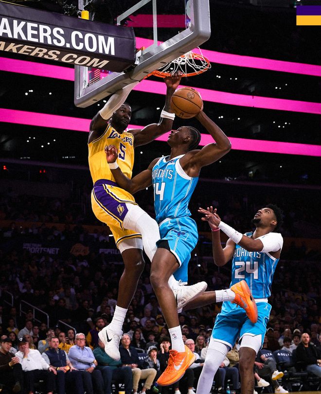 末节,拉拉维亚造犯规两罚全中,东契奇已经回到替补席,湖人最大的问题依旧是防守,黄蜂突破太轻松,好在这一节詹姆斯掌控节奏突破撕裂防守缩小到6分进入暂停。东契奇登场后湖人0-7再度落后到13分,东契奇继续打铁,布里奇斯、三球三分再中,詹姆斯完成一个突破进入暂停,詹姆斯续命2+1,詹姆斯抛投命中,湖人连丢后场篮板,詹姆斯失误湖人无力回天,鲍尔三分命中锁定胜局。