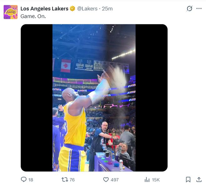 老詹开场的抛镁粉环节全场欢呼。