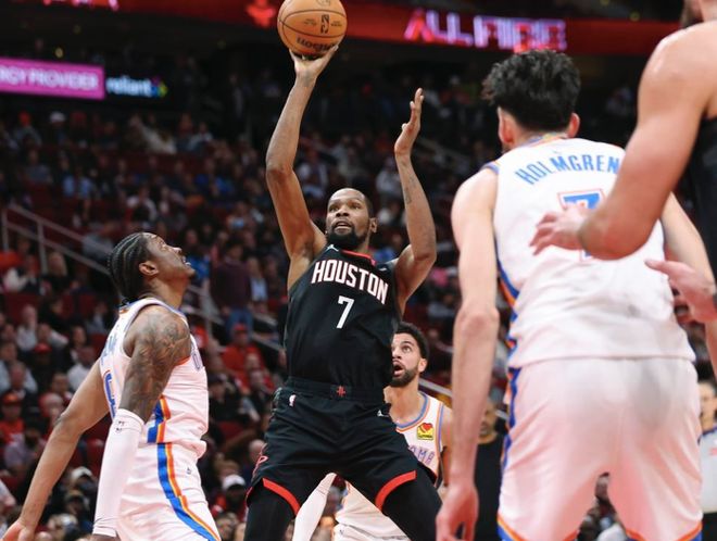 北京时间1月16日,NBA常规赛,火箭主场91-111惨败雷霆。