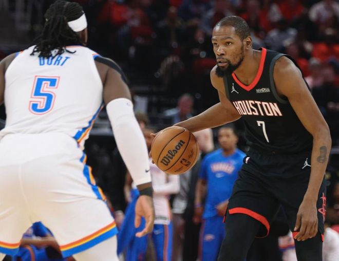 如此低迷的表现,最终全场只拿到91分,刷新赛季得分新低。而这一次杜兰特也是罕见迷失,打了36分钟,23投7中,三分5中0,拿到19分7篮板3助攻3抢断,正负值-20全队最低。此外,近期状态出色的阿门也迷失,16中4只拿到13分,外加9篮板;申京拿到14分13篮板。