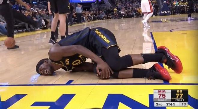 今日勇士对阵热火的比赛第三节中段时,巴特勒在一次切入内线跳起接球时与对方发生碰撞,随后他倒地紧捂膝盖。在队友希尔德和小佩顿的搀扶下离场。