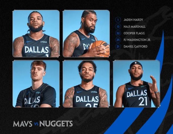 首发阵容方面,独行侠队这边,浓眉手指扭伤确定缺席,欧文、埃克萨姆和莱夫利都因手术后恢复无法出战,老基德排出的最新首发五人组为:哈迪、马绍尔、弗拉格、PJ-华盛顿、加福德;掘金队这边,布劳恩、约基奇、约翰逊和大瓦兰缺阵,首发阵容则为:贾马尔-默里、杰伦-皮克特、佩顿-沃特森、斯宾塞-琼斯和阿龙-戈登。