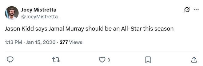 本赛季是穆雷职业生涯第10个年头,此前9个赛季他均无缘全明星,在本赛季全明星次轮投票中穆雷依然仅排在西部第15名。