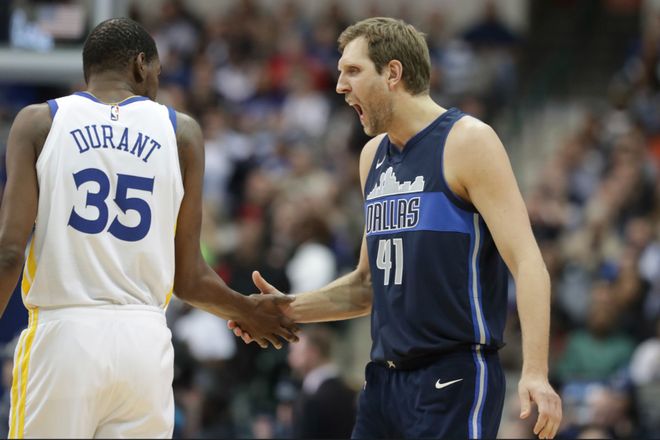 最终杜兰特全场贡献18分、6篮板、8助攻,他也迎来生涯的里程碑时刻。生涯总得分正式超越独行侠传奇球星诺维斯基,来到历史第六的位置。