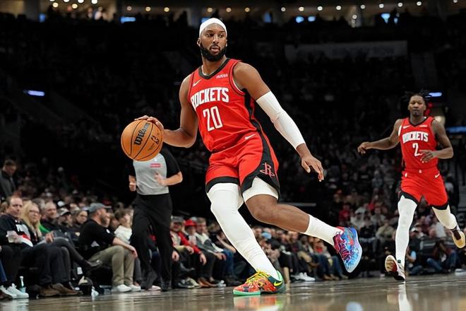 本场比赛中,火箭的先发后场大闸约什-奥科吉(Josh Okogie)确实是起到了不错的效果,但是他在场上的表现也是存在着不小的问题的。奥科吉全场出场33分01秒,投篮4中0,三分线外3中0,罚球2中1,得到了1分2篮板1抢断的数据,还有2次犯规,正负值为+2。奥科吉在进攻端的效率并不理想,他的得分能力非常糟糕,他在三分线外的手感也是一塌糊涂的水平,可以说是没有起到任何的帮助,满满的都是负面影响。不过另一方面,奥科吉在防守端的表现又是令人刮目相看的,他的个人防守能力绝对是非常惊艳的,也是起到了决定性的作用。本场比赛,奥科吉在防守端的突出表现给对手制造了巨大的麻烦,这也为球队的胜利做出了不小的贡献。