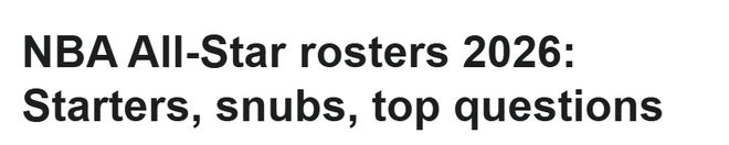 北京时间1月20日,经过数周球迷、媒体与球员的投票评选,2026年NBA全明星赛首发阵容正式确定,西部首发是亚历山大、约基奇、东契奇、文班亚马和库里,东部首发是字母哥、坎宁安、布伦森、马克西和杰伦-布朗。全明星替补名单将于2月2日公布。