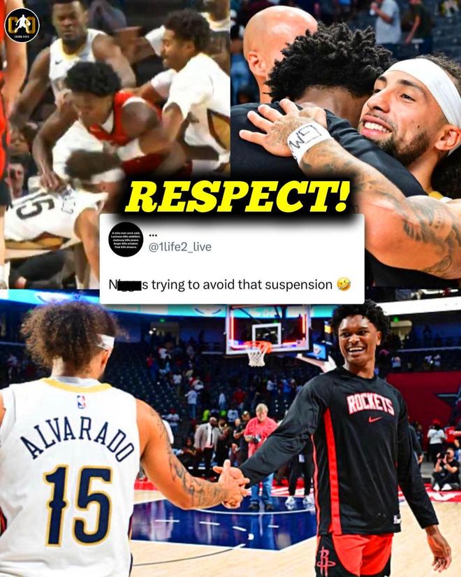 但火箭队不用因此担心阿门与阿尔瓦拉多的关系,两人在抱摔那一场赛后就拥抱致意,不仅没有矛盾,反而看起来有些惺惺相惜。