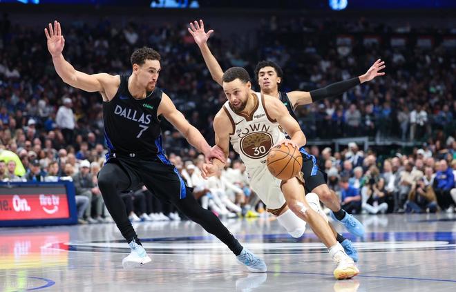 第二节双方轮换阵容阶段,勇士进攻哑火,独行侠这边打了一波12-4的小高潮,克莱三分命中36-31领先5分,勇士暂停。回到比赛,勇士也回敬一波小高潮重新夺回领先优势。但此后防守出现问题,又被独行侠打出一波小高潮,半场结束50-55落后5分。