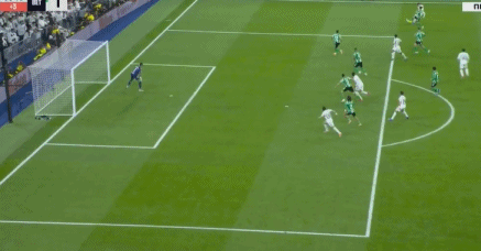 比赛开始后,场面却很快失去平衡。皇马在主场迅速掌控节奏,持续从左路发动进攻。第3分钟,威尼修斯完成第一次强突,下底倒三角回传,巴尔韦德禁区外凌空扫射稍稍偏出,拉开了皇马进攻序幕。