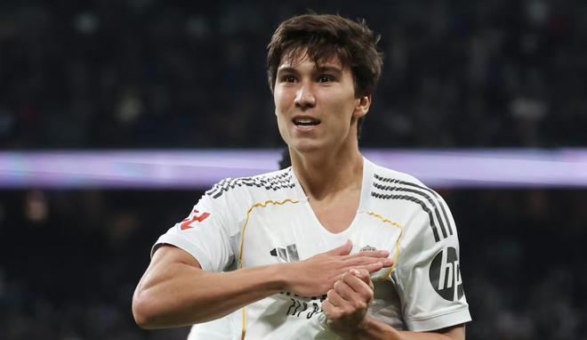 我是在最近两个赛季真正注意到他的,尤其是在卡斯蒂利亚期间,他来到阿尔赫西拉斯比赛的时候。上赛季他的表现令人难以置信,在这里打进了四个非常精彩的进球,而且每一个进球方式都不一样,给我留下了极其深刻的印象。正因为如此,我联系了我的前队友桑蒂-阿拉贡,他现在在皇马青训工作,我对他说:‘这个孩子是一块璞玉,他现在就应该进入一线队。’他告诉我,他的想法和我完全一致,而且这件事很快就会发生。后来他参加了世俱杯,表现同样非常出色。他的条件非常突出,无论是作为终结型前锋,还是担任第二前锋都没有问题。他的未来不可限量。当我第一次在这里看到他时,就被他的能力深深吸引了,他既能头球破门,也能完成半凌空射门,左右脚的射门能力都非常出色。而且他是一名聪明、无私的球员。如果我是皇家马德里高层,我一定会像其他俱乐部那样,充分利用他的能力。