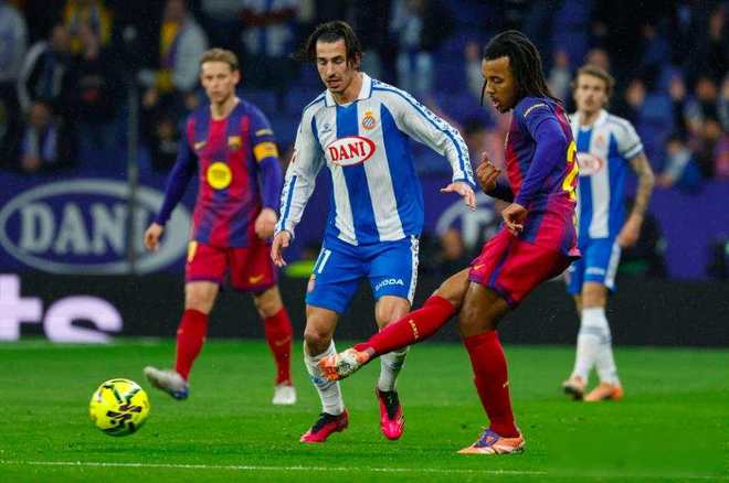 西班牙人一上来就猛攻,前三十分钟七次射门,巴萨防线差点没扛住,第三十七分钟霍安·加西亚飞身把对方近在咫尺的头球扑出去,诺坎普以外的球迷都喊了起来,巴萨门将也没掉链子,第六十四分钟单手挡开对方的单刀,连埃里克·加西亚都愣在原地,俩门将像上了发条似的,满场扑救,硬是把这场拉锯战拖到了补时。