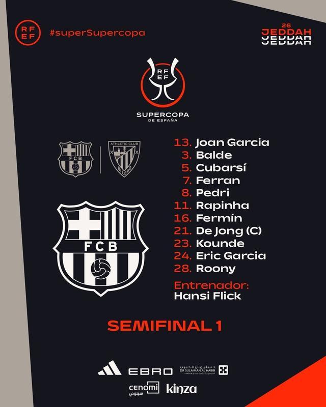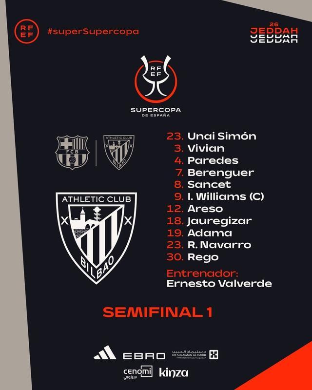 北京时间1月8日3:00,西超杯半决赛,巴萨对阵毕尔巴鄂竞技。赛前首发公布。