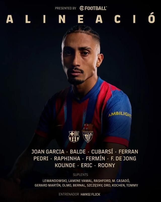 前锋:28-巴尔德吉(72' 亚马尔),7-费兰,11-拉菲尼亚(64' 拉什福德)