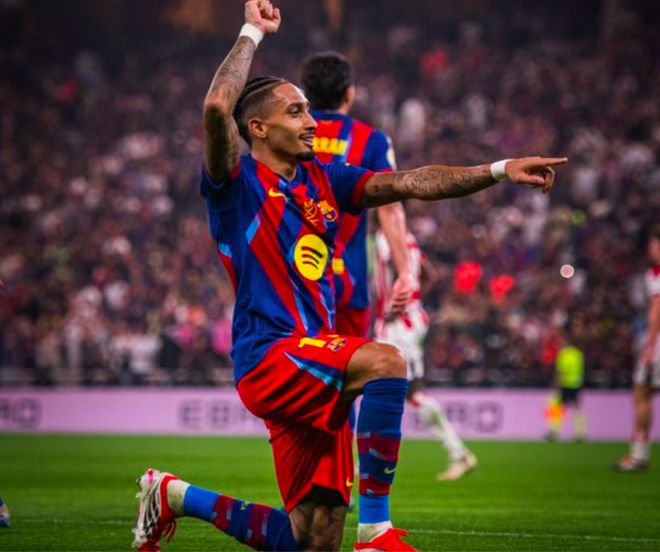 第51分钟,毕尔巴鄂竞技的防线乱成一片,拉菲尼亚跟进,梅开二度。