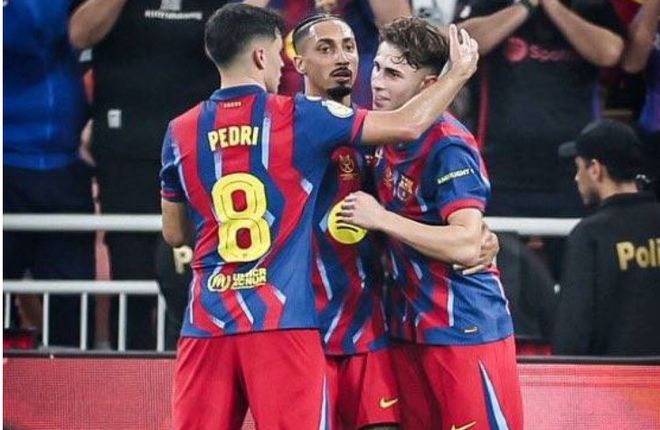 西超杯还是延续四队的赛制,先半决赛后决赛。昨日凌晨,巴萨依靠拉菲尼亚的梅开二度,以及费兰-托雷斯、费尔明、巴尔德吉的联袂破门,最终5-0狂胜毕尔巴鄂竞技,不仅强势打进决赛,还创造了西超杯历史最大分差胜利纪录。