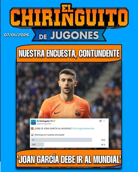 比赛结束后,西班牙六台在社交媒体上发布了一项调查,问题为“霍安-加西亚应该参加世界杯吗?”一共有5024名球迷参与了调查,其中82.2%选择了“应该”。