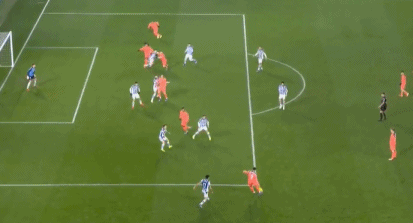 第7分钟,奥尔莫前场抢断,费尔明禁区外推射破门,不过皇家社会球员集体投诉奥尔莫犯规在先。