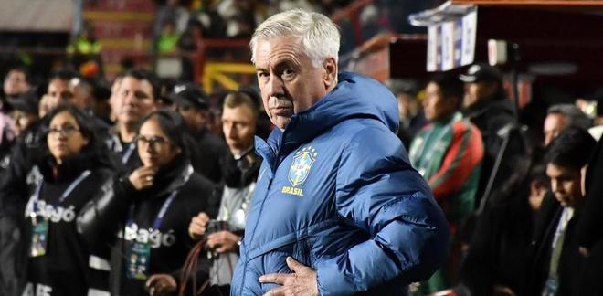 作为皇马队史最成功的主教练,安切洛蒂此次与巴西足协代表团一同来到现场,目的是考察维尼修斯的表现,罗德里戈则因伤坐在了看台之上。