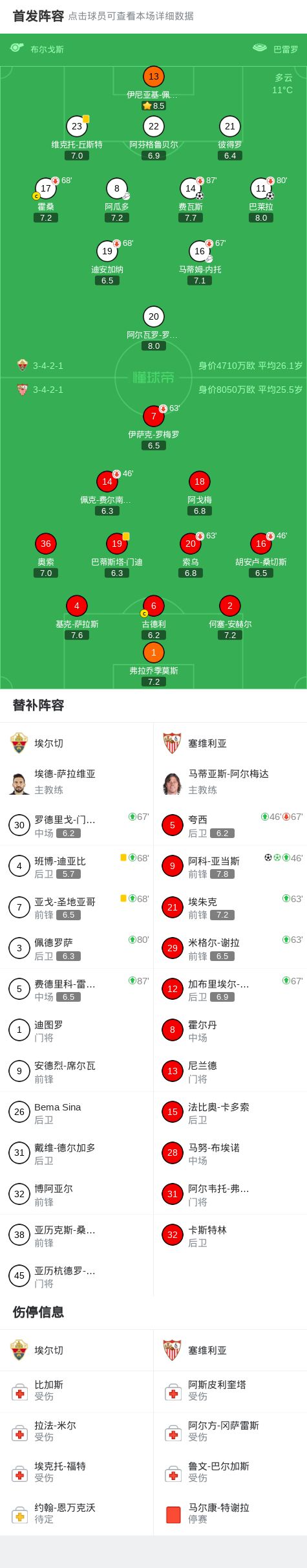 北京时间1月20日西班牙足球甲级联赛 联赛 第20轮,埃尔切主场对阵塞维利亚。埃尔切费瓦斯破门,巴莱拉破门。塞维利亚阿科-亚当斯梅开二度。最终比分埃尔切 2-2 塞维利亚。