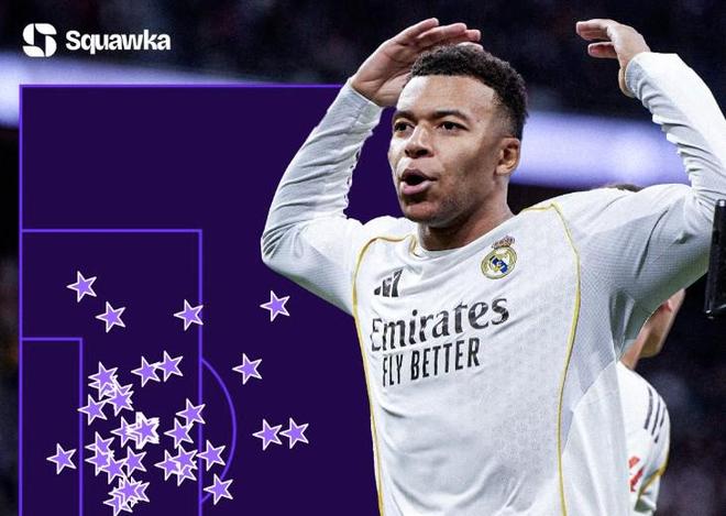 现年27岁的姆巴佩2024年加盟皇马至今代表球队在西甲出场53次,贡献了50粒进球和7次助攻。