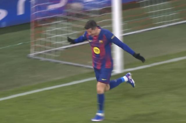 此役客场对阵布拉格斯拉维亚,上半场不慎自摆乌龙的莱万在比赛第70分钟打入一球,帮助巴萨取得4-2领先。
