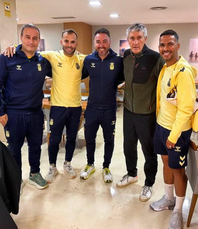 照片显示,塞蒂恩与自己曾执教过的球员比埃拉(国安前外援)、赫塞-罗德里格斯等人合影留念。塞蒂恩以重磅特邀观赛嘉宾的身份现身桑坦德主场,现场观战。