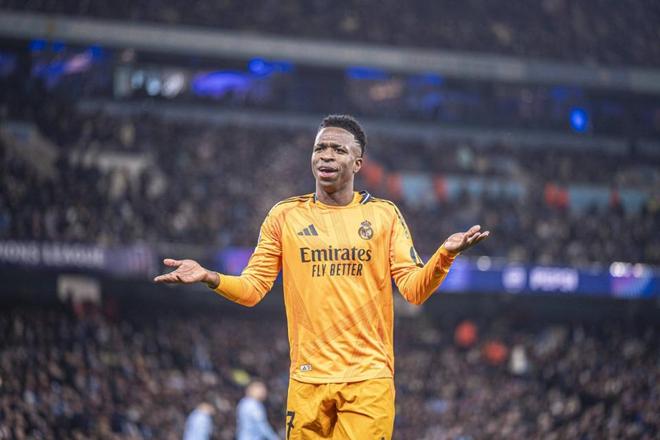 2023年10月,维尼修斯与皇马成功续约至2027年夏天,他的年薪也涨到了2500万欧元。那个赛季,他出战39场砍下24球9助攻,率领皇马拿到了西甲和欧冠的双冠王,在本泽马离队的情况下扛起了锋线大旗。那个时候,皇马球迷都认为维尼修斯在伯纳乌的生涯会很长很长。