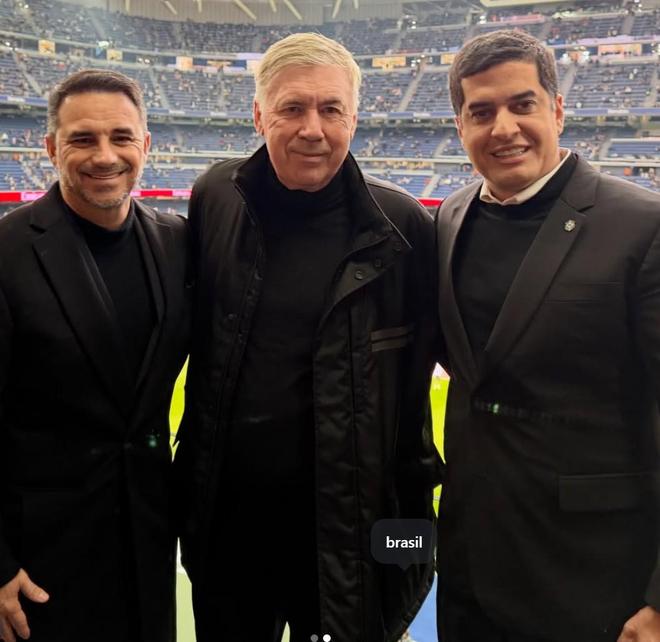本轮西甲,皇马主场以2-0击败莱万特。今日,前皇马主帅安切洛蒂在社交媒体上晒出了自己重返伯纳乌的照片,并配文写道:“看到皇马取胜真的非常开心!和我在巴西国家队的同僚一起分享这份胜利。”