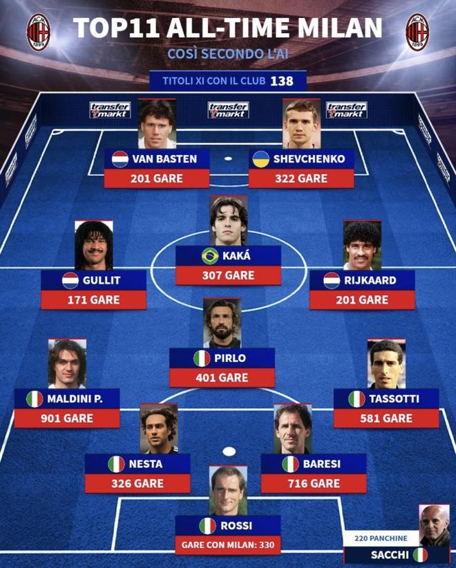 最近《德国转会市场》发布了AC米兰历史最佳阵容榜单,马尔蒂尼、范巴斯滕、卡卡等球员入选。因扎吉和博班等人遗憾落榜,未能跻身这份历史经典阵容。接下来,我们将从阵容的实力和潜在缺陷角度,深入分析这份阵容是否真的是AC米兰的最强阵容。